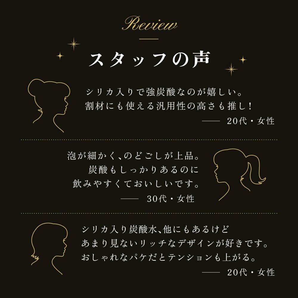 ・水源は国内の天然水を使用し、シリカは自然由来です。日本国内製造で、品質管理も徹底されています。